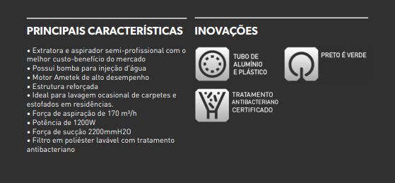 Lava Extratora IPC-Soteco é ideal para quem procura mais qualidade na lavagem de carpetes e estofados. Também ideal para lavagem de colchões. O melhor custo-beneficio do mercado de extratoras profissionais, pois possui qualidade de garantia de uma das maiores fabricantes de equipamentos de limpeza profissional. Desenvolvida para o mercado brasileiro a extratora lava, é garantia de qualidade de limpeza profissional de estofados e carpetes.