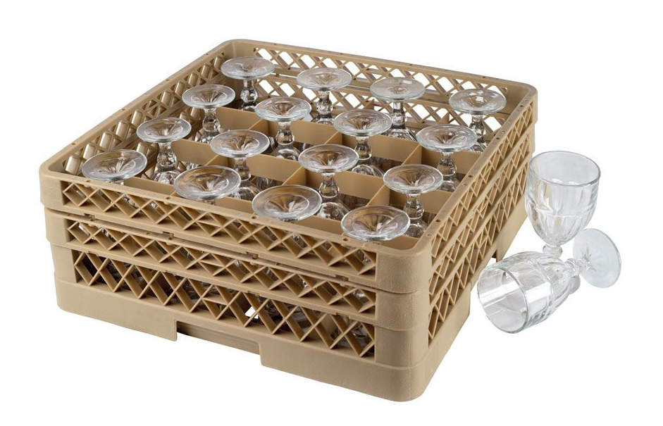 Rack para máquina de lavar louça indicado para copos, taças e tulipas. Ideal para esses utensílios, pois as barreiras protetoras em forma de colméia evitam quebras e lascas dos copos durante todo o processo de lavagem. O desenho e o formato do rack para máquina de lavar louça para copos, taças e tulipas é ideal para a circulação da água e detergente de uma forma eficaz e também foi pensado de forma que o ar circule entre a louça para uma melhor secagem e possibilitar uma melhor higienização. O rack para copos, taças e tulipas pode ser facilmente guardado de forma empilhado. Medida 50x50cm