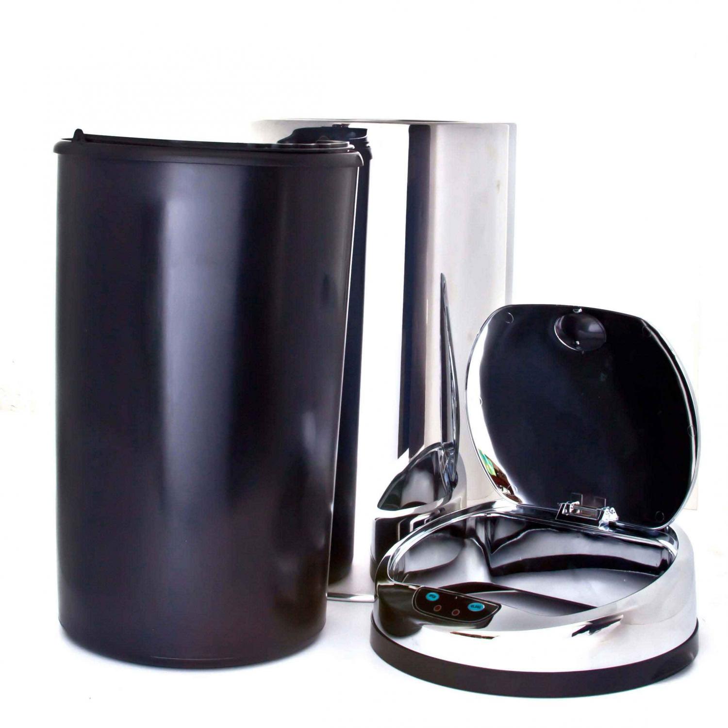 Lixeira Eletrônica com sensor basta aproximar a mão e a lixeira abre e fecha automaticamente após o uso. quando a sua mão ou qualquer objeto estiver a mais ou menos 10 cm acima da janela do sensor infravermelho, a tampa abrira automaticamente em 0,5 segundos e fechará automaticamente após 4,6 segundos.