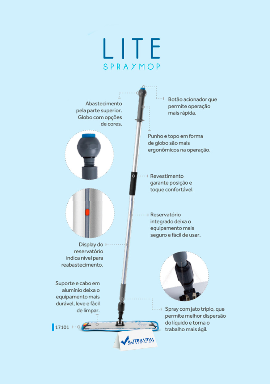 O Lite Spray se diferencia dos demais pois o seu jato triplo permite uma melhor dispersão de produto no piso.