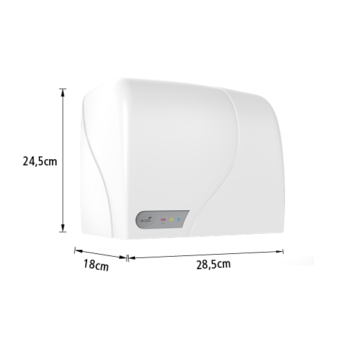 Secador de mãos com filtro HEPA, que retém até 99% das bactérias do ar.